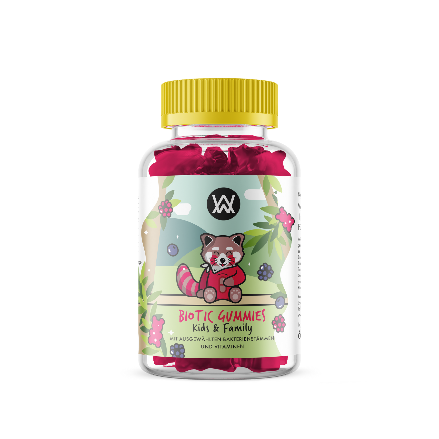 Die Biotic Gummies Kids & Family sind leckere Gummibärchen für Kinder ab 4 Jahren. Sie enthalten ausgewählte Bakterienstämme sowie wichtige Vitamine, die das Immunsystem und das allgemeine Wohlbefinden unterstützen – ganz ohne künstliche Farb- und Aromastoffe.