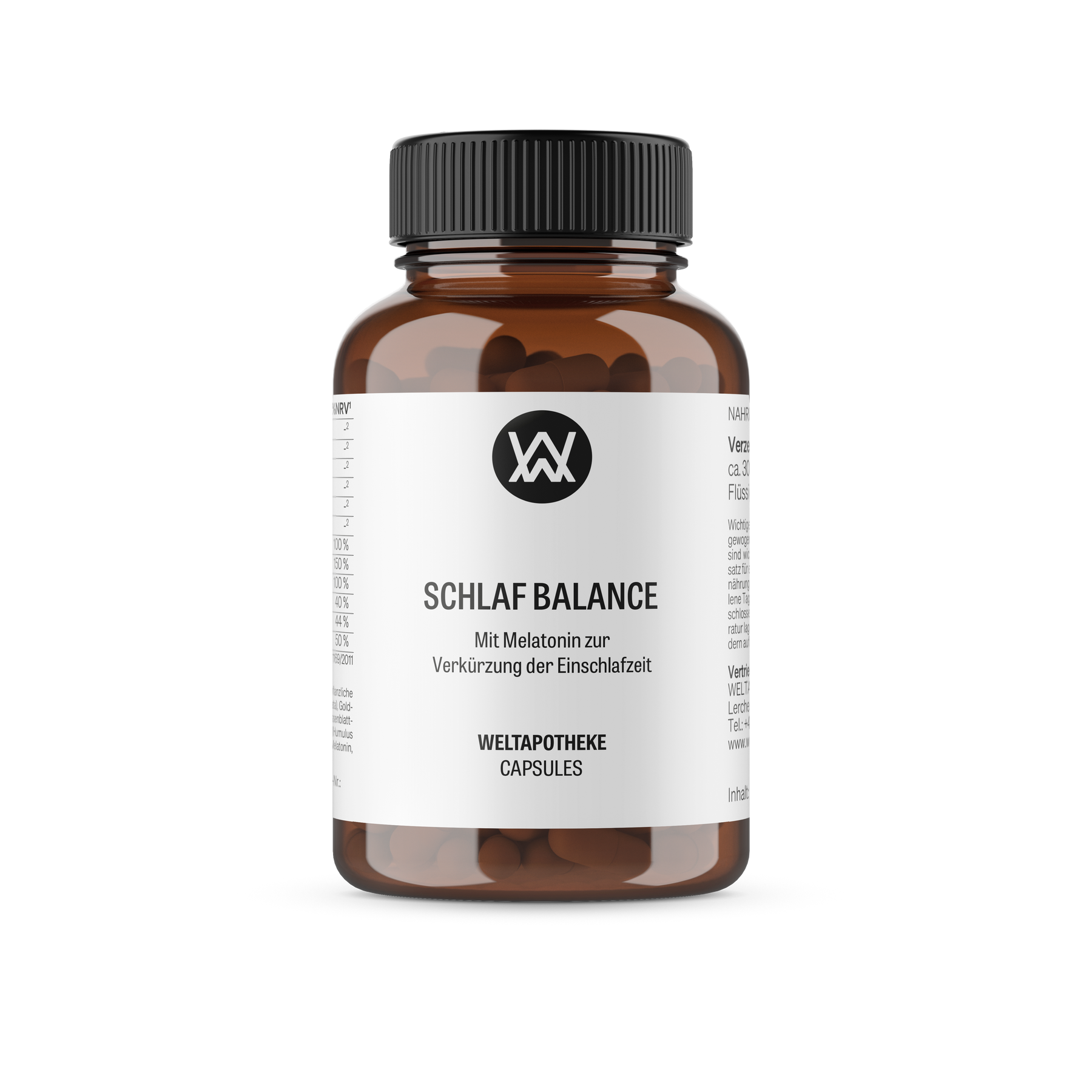 Schlaf Balance kombiniert Melatonin mit wertvollen Pflanzenextrakten, Magnesium, Zink und B-Vitaminen. Melatonin trägt dazu bei, die Einschlafzeit zu verkürzen. Ergänzt wird die Rezeptur durch Passionsblume, Goldmohn, Melisse und Hopfen, die traditionell für ihre entspannenden Eigenschaften bekannt sind.