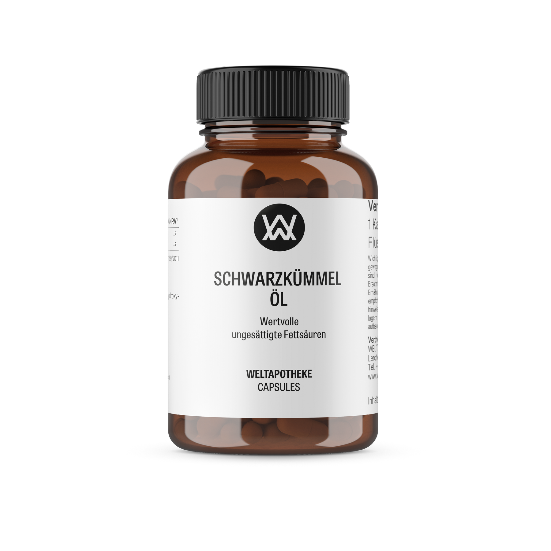 Schwarzkümmel hat im asiatischen Raum und in Nordafrika seit Tausenden von Jahren einen sehr hohen Stellenwert. Seinen Inhaltsstoffen wird ein harmonisierender Effekt auf das Immunsystem, die Verdauung, das Herz-Kreislauf-System und die Haut zugeschrieben. Die Kapseln enthalten hochwertiges ägyptisches Schwarzkümmelöl, welches durch schonende mechanische Kaltpressung gewonnen wird. Dadurch bleiben die wertvollen Inhaltsstoffe (ungesättigte Fettsäuren, ätherisches Öl) und ihre gesundheitsfördernden Wirkungen erhalten.