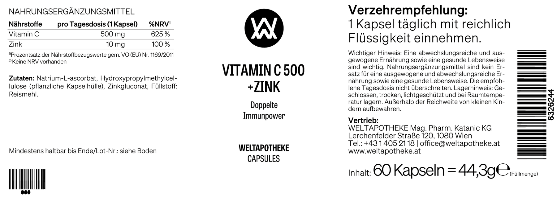Natrium-L-ascorbat, Hydroxypropylmethylcellulose (pflanzliche Kapselhülle), Zinkgluconat, Füllstoff: Reismehl.
